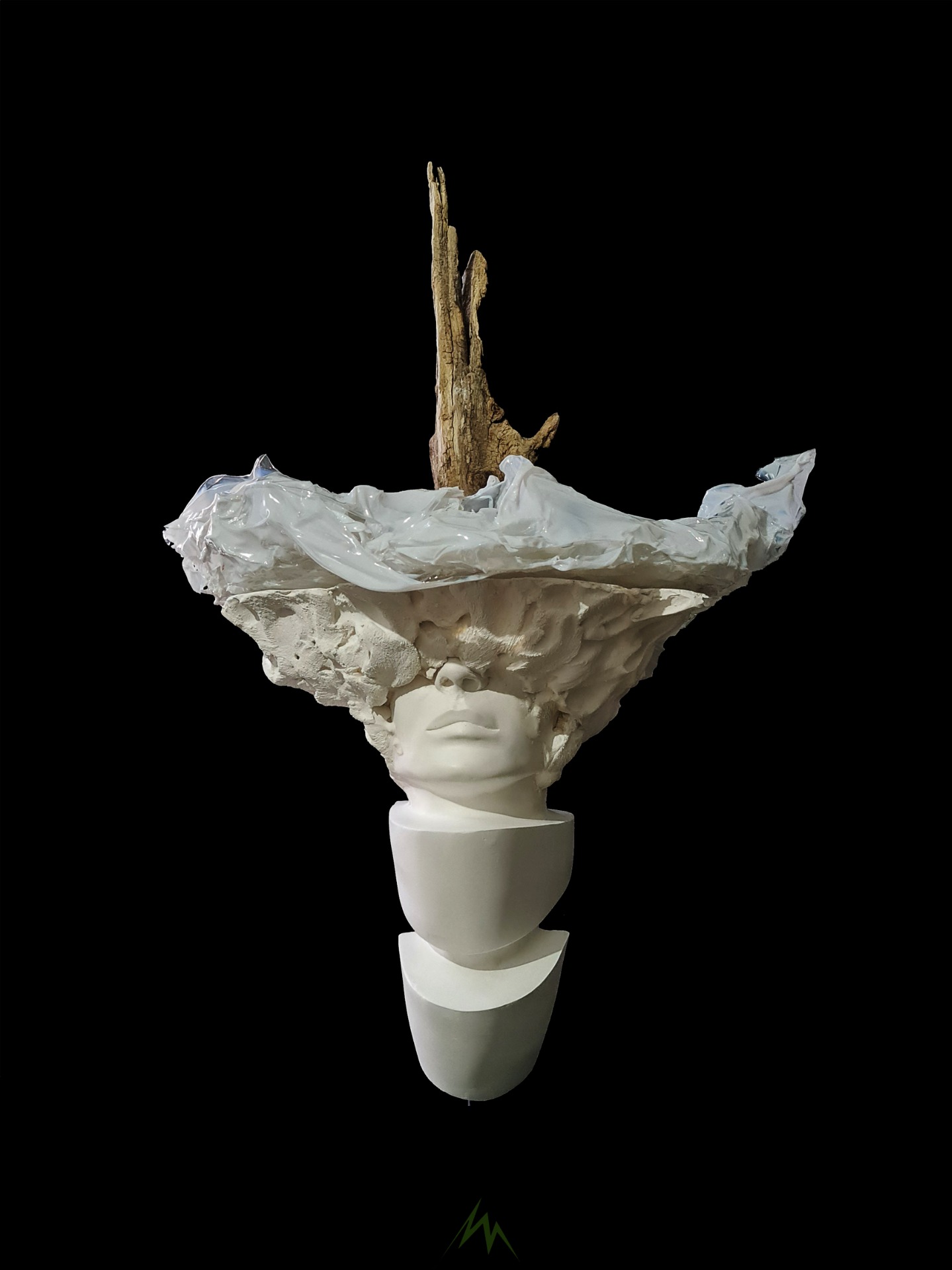 40X 35 H 63 cm. - gesso, pvc, lamp., marine wood insert.